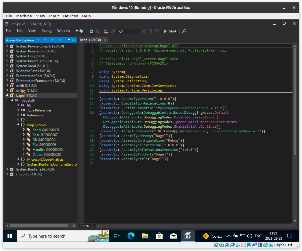 This writeup describes how we approached the box Bagel from Hack The Box (https://www.hackthebox.eu). The box is based on Linux and it is ranked medium. Tools and techniques used in this hack are Nmap, Dirb, Firefox, Curl, C# .net and JSon.