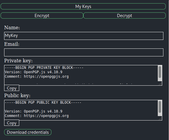 In the file ’/home/eddie/.config/google-chrome/Default/Local Extension Settings/didegimhafipceonhjepacocaffmoppf/000003.log’ we can find ‘PGP PRIVATE KEY’ and ‘PGP PUBLIC KEY’. Save them both locally on your machine.