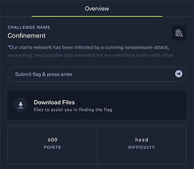 As you can see a lot of players joied for this years event. There’s plenty of challenges to choose from but the ones that involved most members from our team this year was a challenge called Confinement. This was a challenge in the forensics category and it was rated as hard.
