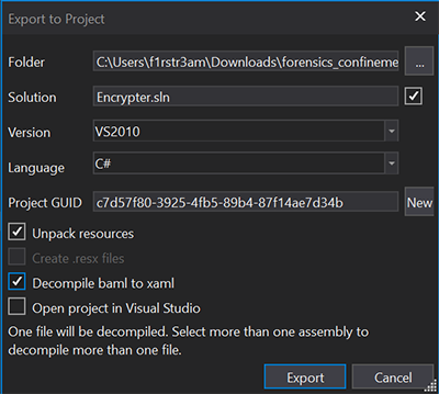 And look there down in the bottom. We got the UID we are looking for. So now that we have the salt and the key (Program.UID) we should be able to patch the malware with a decryption function so that we can restore the encrypted files.