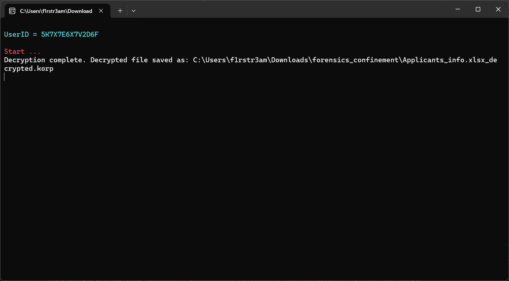 PS C:\Users\f1rstr3am\Downloads\forensics_confinement> move .\Applicants_info.xlsx_decrypted.korp .\Applicants_info.xlsx