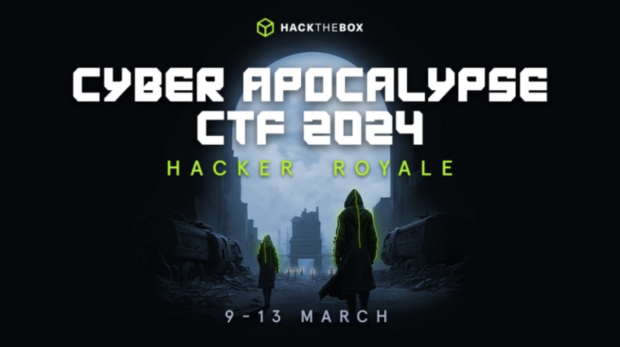 Hack The Box arranged Cyber Apocalyse 2024 between 9 Mar - 14 Mar. It was a five day event with a 20 person per team limit. This CTF is in the usual Jeopardy style and divided into categories of misc, reversing, forensics, web, crypto, pwn, blockchain and hardware.