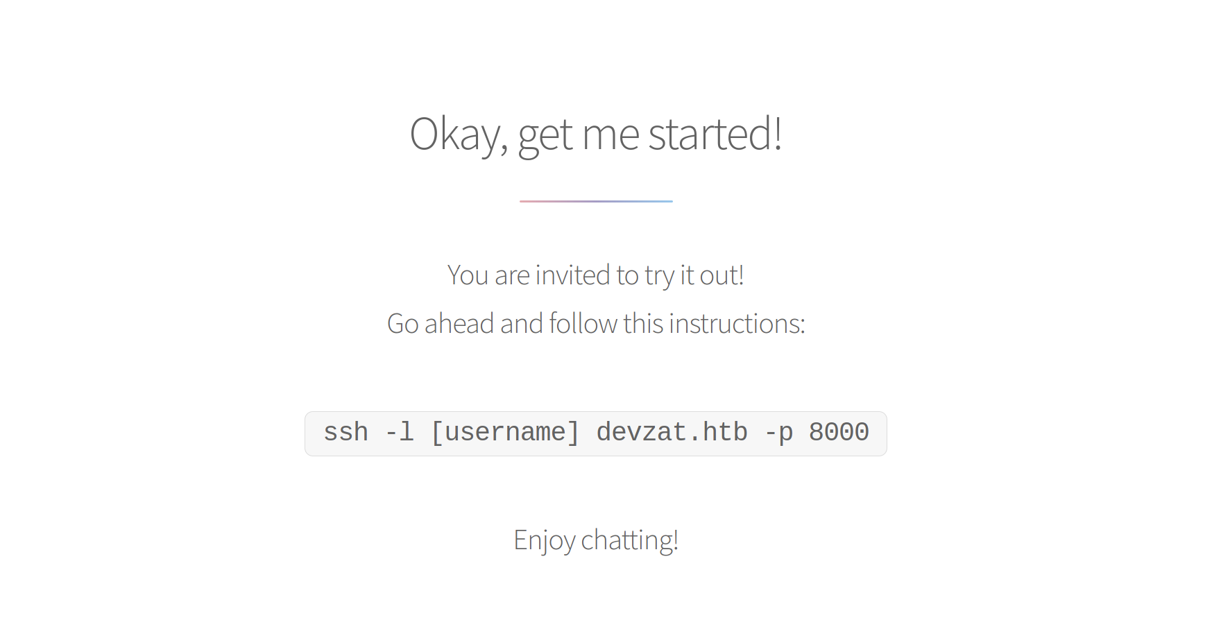 + http://devzat.htb/index.html (CODE:200|SIZE:6527)