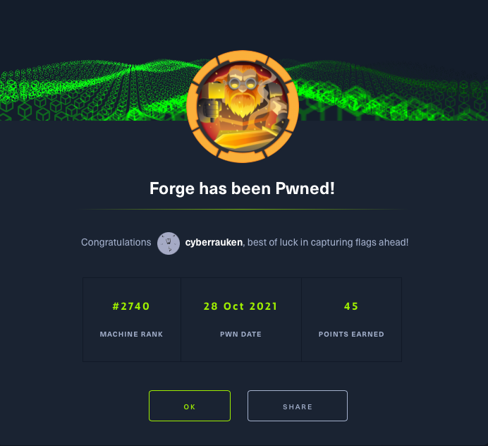+ http://forge.htb/server-status (CODE:403|SIZE:274)