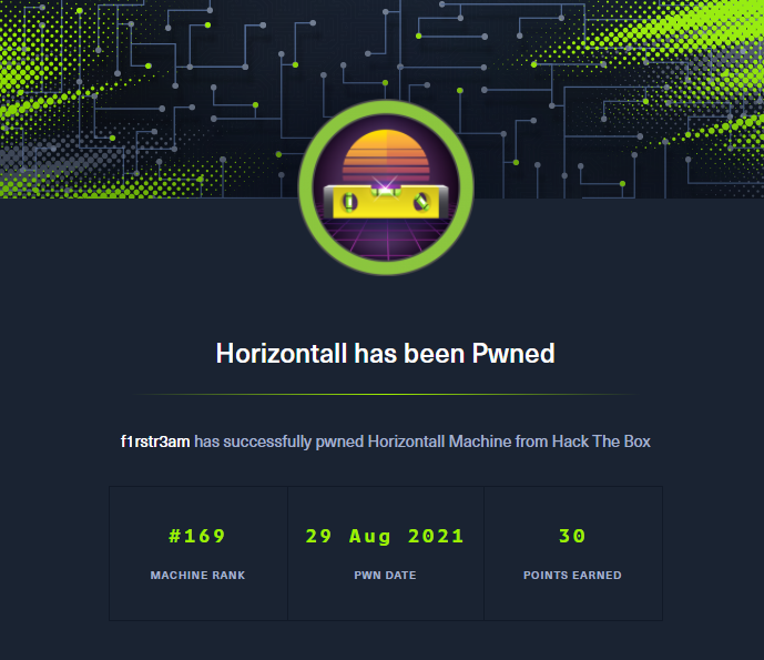 This writeup describes how I approached the box Horizontall from Hack The Box (https://www.hackthebox.eu). The box is based on Linux and it is rated easy. This box includes vulnerabilities that is known and documented (CVE-2019-18818, CVE-2019-19609 , CVE-2021-3129) Tools and techniques used in this hack are Nmap, Dirb, Ffuf, Firefox, Burpsuite, Curl, Python, JSon and JWT.