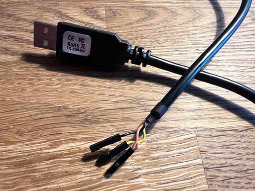 We are going to use a usb2uart adapter to connect there. That cable looks like this: