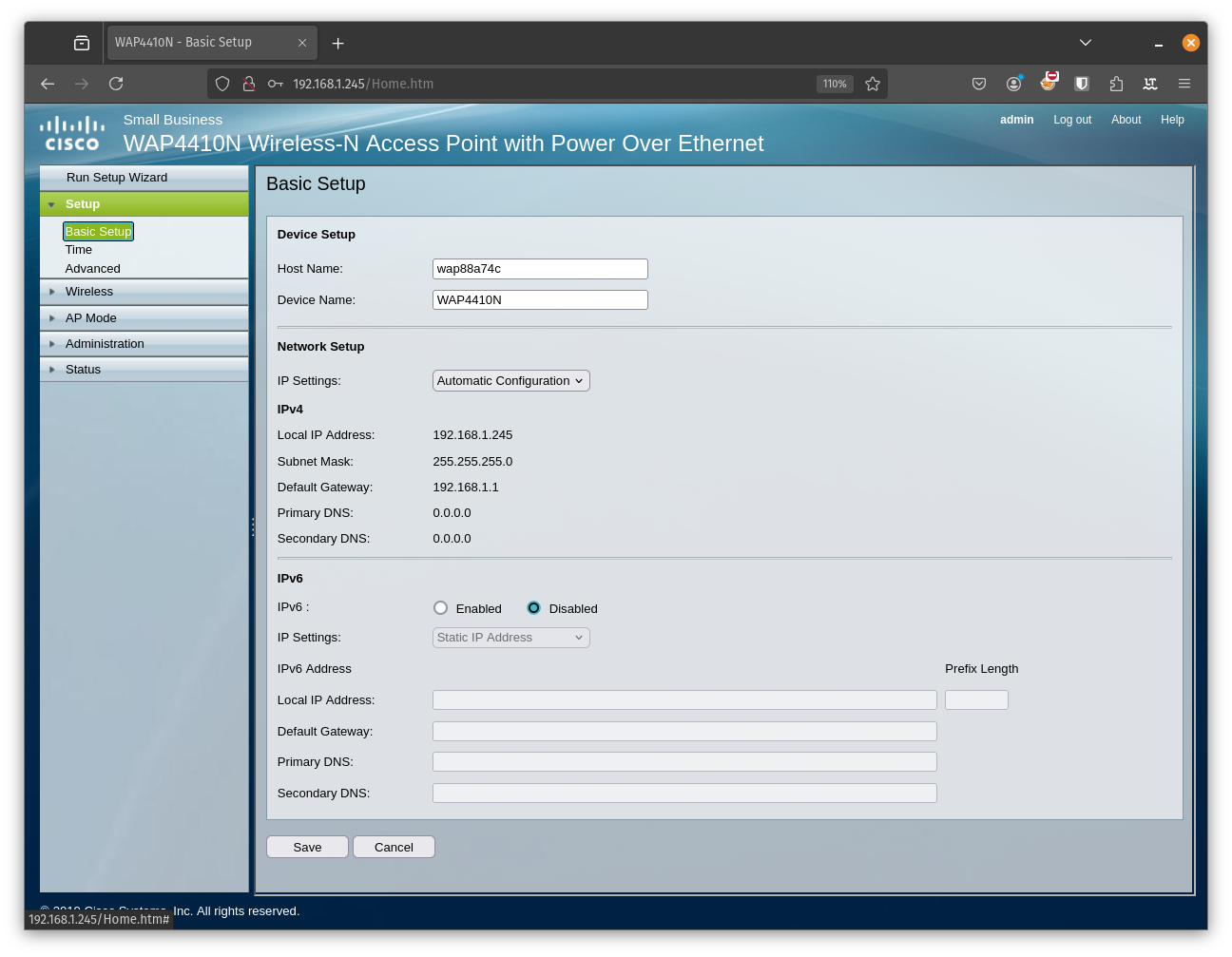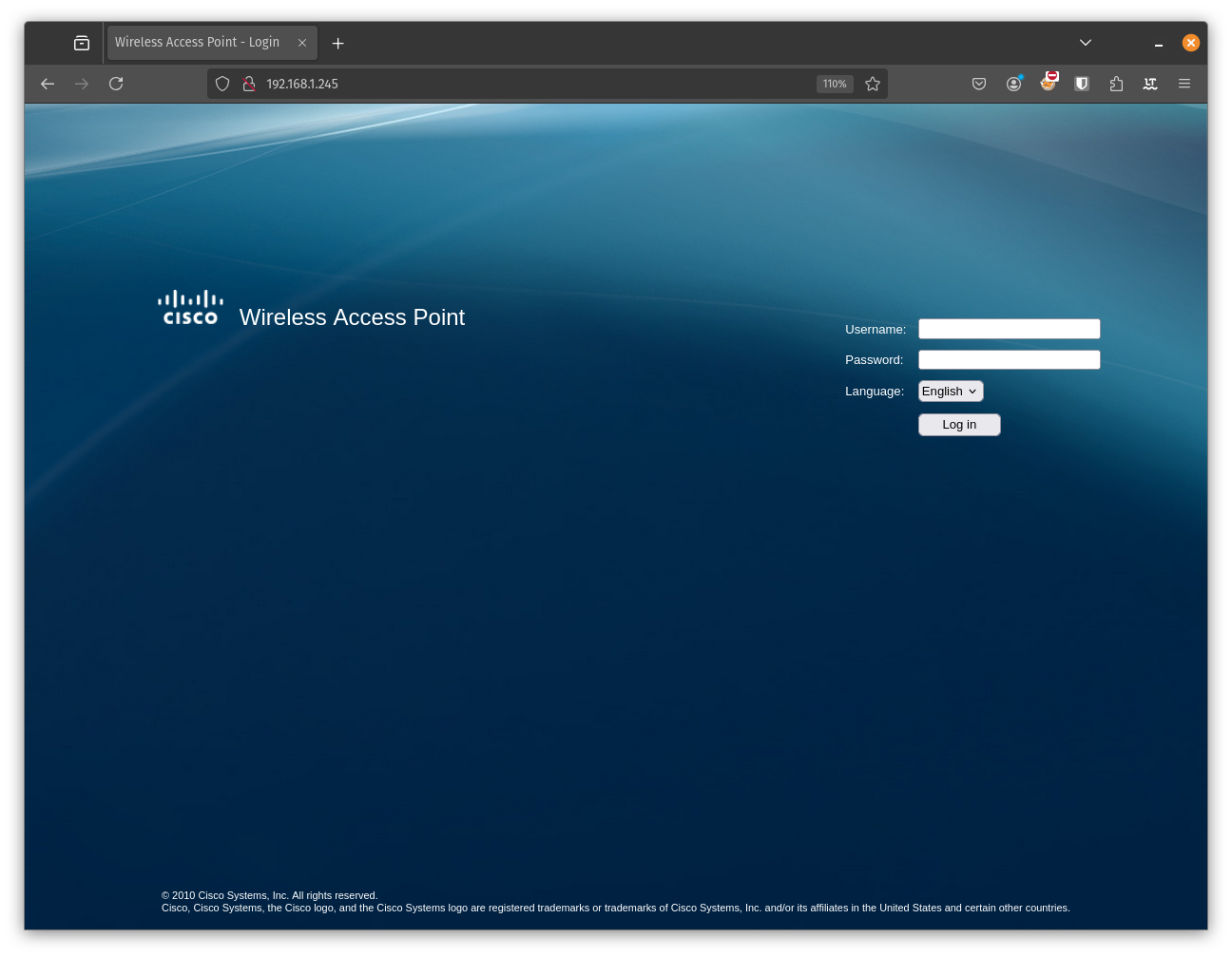 Since I am 192.168.1.25 and nothing else is connected to this network I guess 192.168.1.245 must be the router. Two ports are open which I guess both are the web based administration interface of the router. Let’s see if we can reach it.