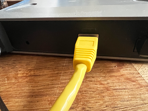 And just like that it started up. There’s power, we seem to have a wireless network and I just could not resist to plug in an ethernet cable in the only port available at the back of the device, that’s probably why the ethernet led is lit.