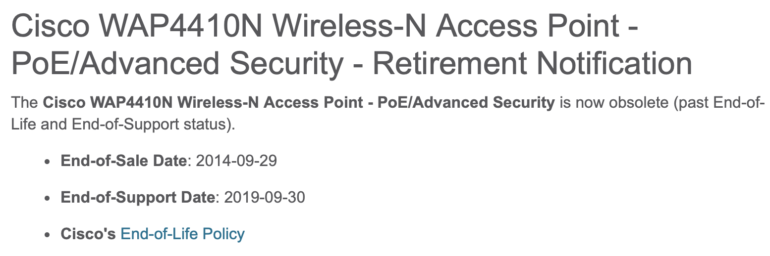 We can just use this information to go on the internet and find out more about the device. It’s always a good idea to start at the manufacturers site. Let’s see what Cisco says about their product.