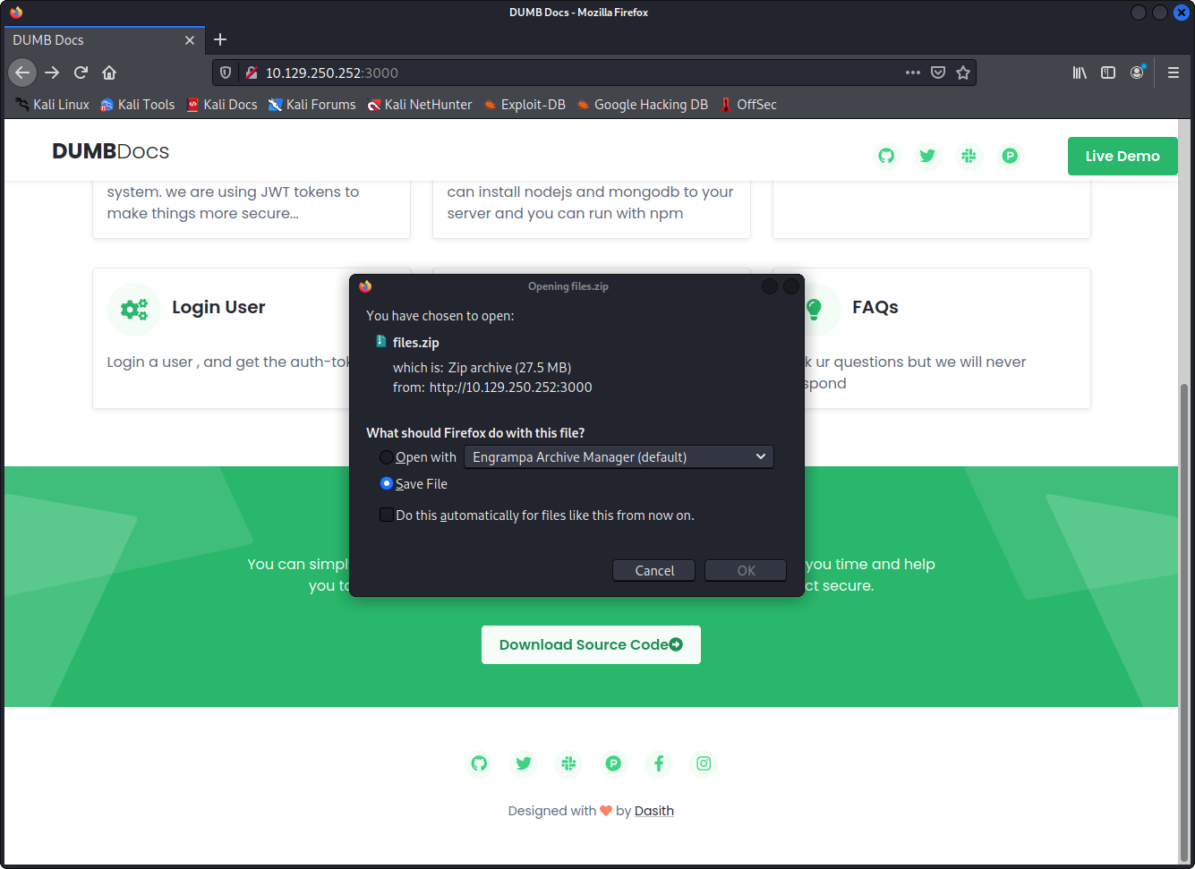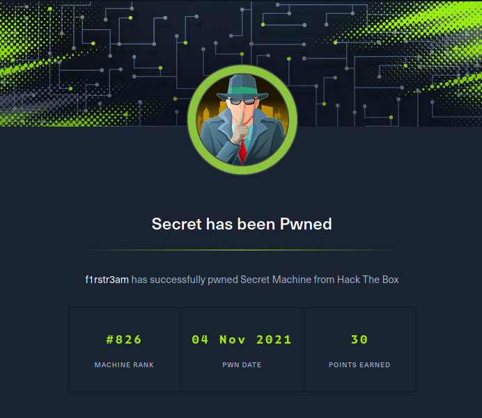 So what information can we gather about the box before even starting. The name of the box is Secret. When I started an instance of the box on the VIP network it got ip-address 10.129.250.252. The box is based on Linux and it’s rated easy.