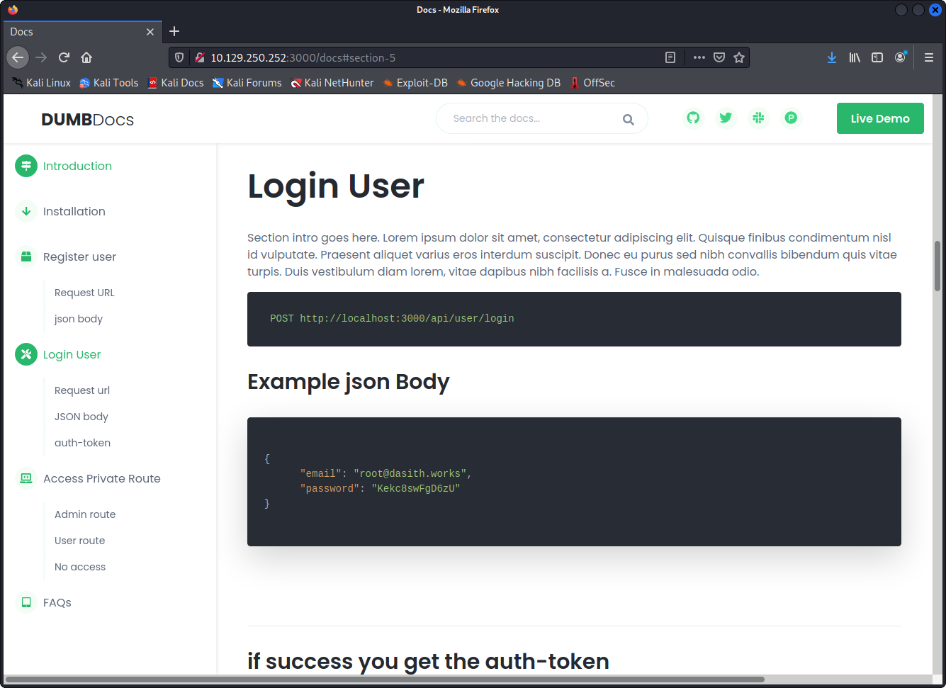 We all like when a box is as realistic and close to reall world as possible, I do not concider the path to user real world like. It´s a bit strange but still good things to learn about like JWT and understanding the anatomy of a NodeJS application.